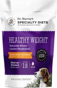 Dr. Harvey's Specialty Diet Healthy Weight Chicken Recipe is a human-grade, low-fat dehydrated healthy weight dog food for adult/senior dogs. See if it's worth it for your pup!