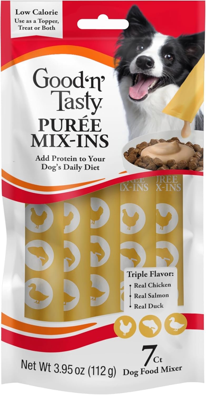 Boost your dog's mealtime with Good 'n' Tasty Triple Flavor dog food puree. Our review covers why these clean, real-meat mix-ins solve picky eating. Hydration & flavor!
