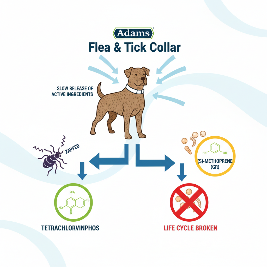 When our team at Petscarelab looked into what makes the Adams Plus Flea & Tick Collar tick, we found a formula designed to tackle the "invisible" problem. Many cheap collars only kill adult fleas, but this one uses a dual-action approach. It contains Tetrachlorvinphos at 14.55% to knock out adult fleas and ticks on contact, plus (S)-Methoprene at 1.02%. That second ingredient is an Insect Growth Regulator (IGR), which is basically birth control for bugs—it stops flea eggs and larvae from maturing into biters.
