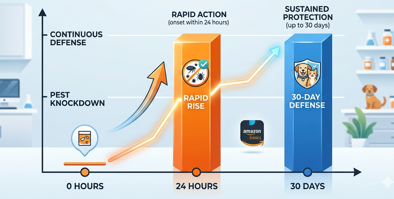 Meanwhile, (s)-methoprene serves as an Insect Growth Regulator (IGR). This is the secret weapon for long-term control. It breaks the flea life cycle by preventing eggs and larvae from maturing into biting adults. The treatment starts knocking down pests within 24 hours of application and gives your dog a solid 30 days of continuous defense.
