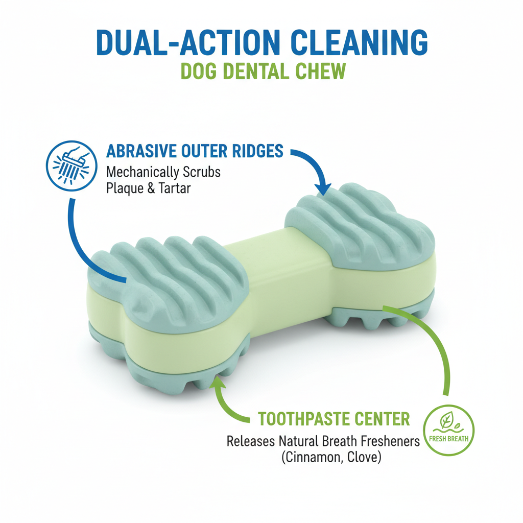 Petscarelab’s Conclusion: A heavy-duty abrasive dental chew specifically designed for large breeds (40+ lbs) that tackles plaque and "stinky breath" with a unique toothpaste center and deep outer ridges.