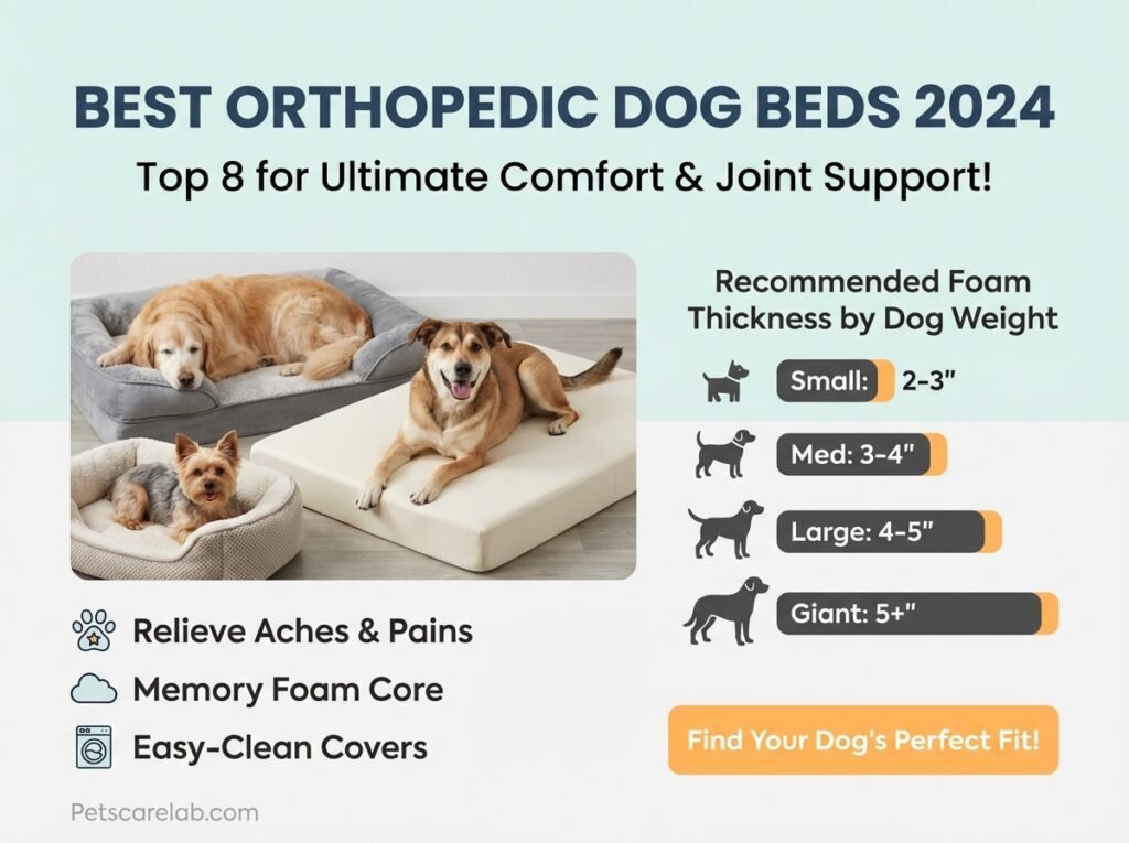 Our team at Petscarelab dug into dozens of orthopedic dog beds, putting them through their paces for comfort, support, durability, and how easy they are to keep clean. We focused on beds made with top-notch foam, sturdy covers, and smart designs that fit all sorts of pups and their unique needs. After all our research and testing, we’ve picked our top eight favorites for the best orthopedic dog beds of 2024.