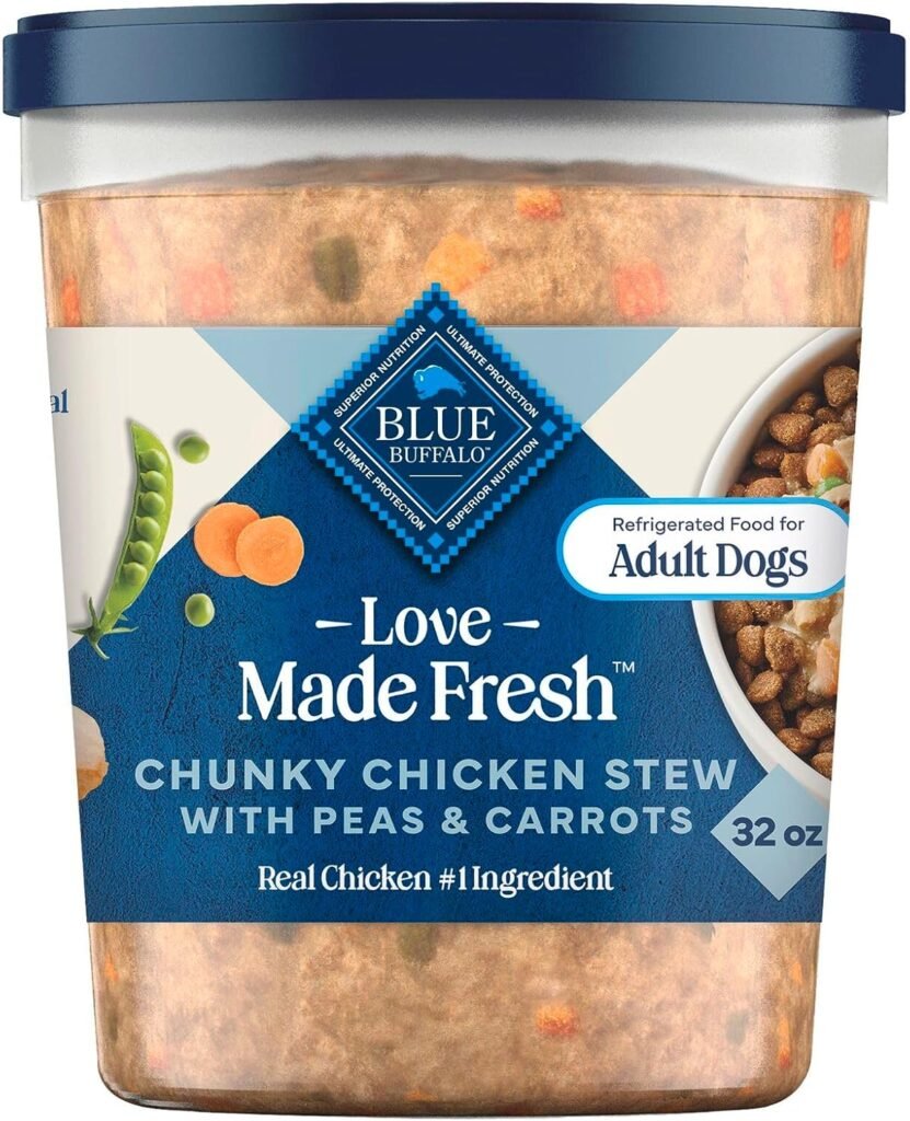 Our team at Petscarelab rates Blue Buffalo Love Made Fresh as a high-quality, refrigerated meal option featuring real chicken and vibrant vegetables, perfect for adult dogs of all breeds who thrive on a fresh-food diet or need a tasty topper to fix mealtime boredom.