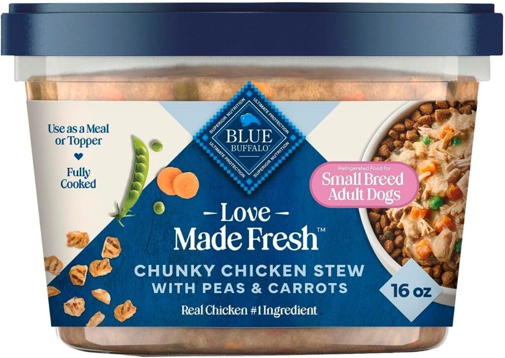 PetsCareLab’s Conclusion: Blue Buffalo Love Made Fresh is a premium, refrigerated chunky chicken stew that offers high-quality protein and real veggies, specifically formulated for adult small breed dogs looking for a home-cooked taste without the kitchen mess.