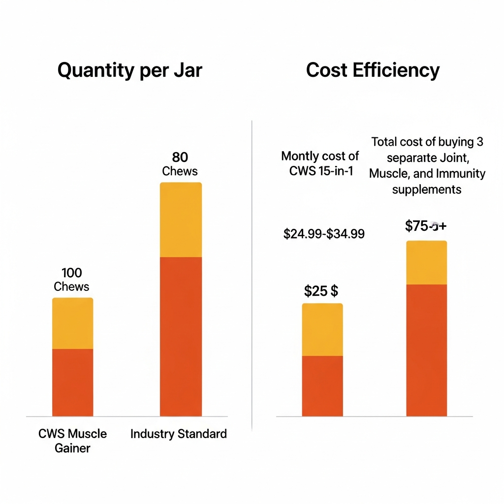 Ever look at your dog and feel like they’re a bit too "ribby" despite eating their fill? Whether you’ve got a high-energy rescue that can’t seem to keep weight on, a growing puppy that looks like a lanky teenager, or a senior dog losing their muscle tone, the struggle is real. We decided to test the Canine Weight Set (CWS) Muscle Gainer Dog Treats to see if this "15-in-1" supplement actually delivers on its promise to build mass and boost immunity, or if it’s just another fancy treat. Many owners are turning to these as a "lazy" alternative to complex raw diets or messy protein powders that dogs often snub.