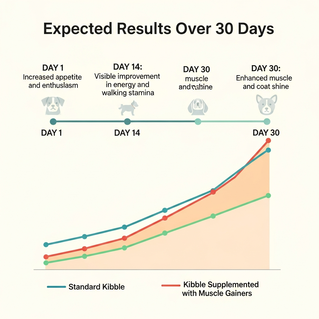 You likely won't see "muscles" overnight, but many owners notice an immediate boost in energy. The beefy scent alone acts as a great appetite stimulant for dogs that have been picky about their regular meals. With consistent use, you’ll likely see a more "solid" feel to your dog’s frame and a bit more physical stamina during walks. The joint support ingredients start to kick in here, helping older dogs move a bit more fluidly.