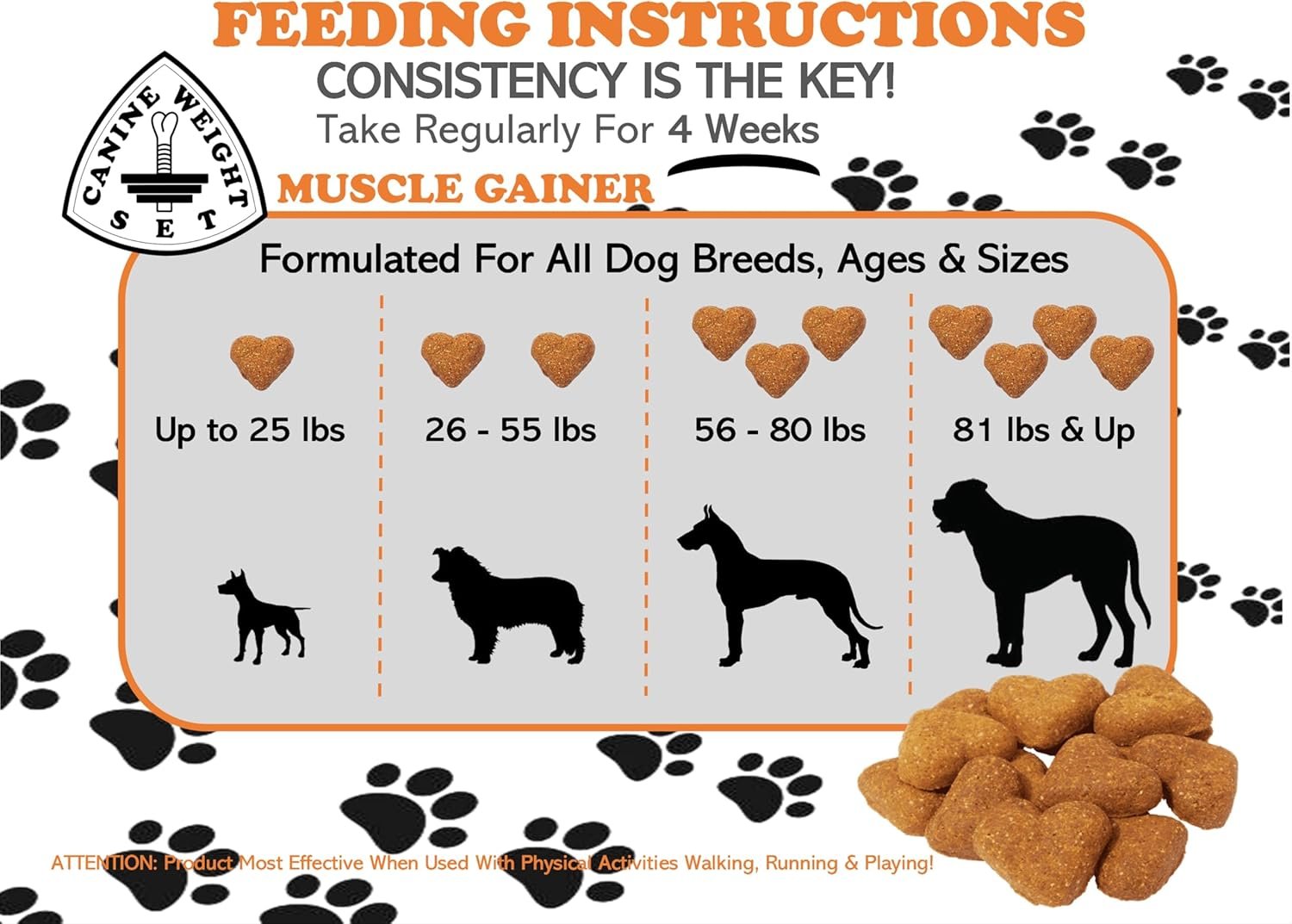 Note: Muscle Gainer Dog Treats and compound amino acid supplements should only be used under the guidance of a veterinarian if your pet shows severe symptoms like extreme muscle wasting.