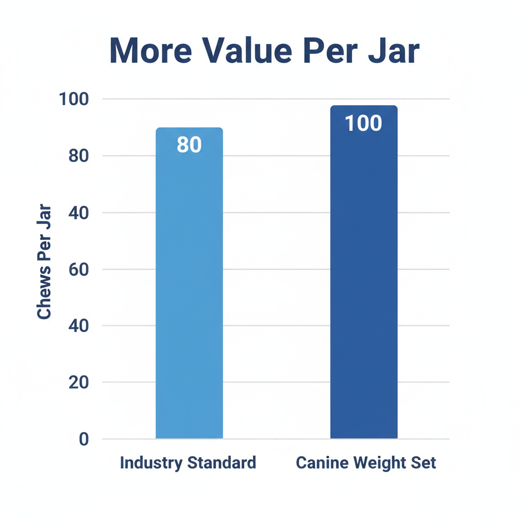 - Great Value: 100 chews per jar lasts much longer than the standard 60-count tubs.