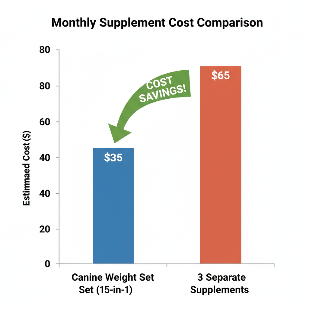 At roughly $0.35 per chew for a 15-in-1 formula, it’s much cheaper than buying separate muscle, joint, and immune supplements.