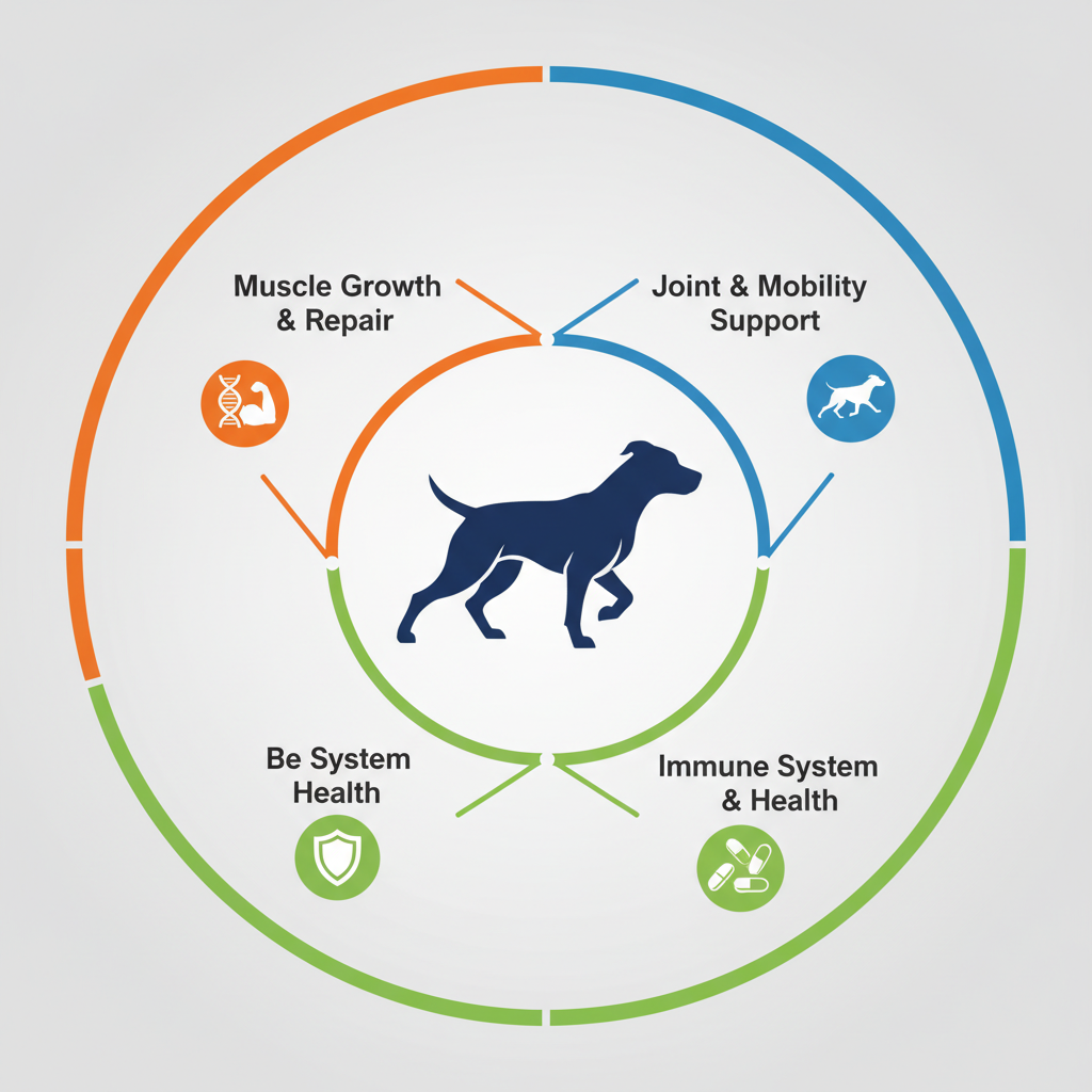 This supplement doesn't just focus on protein. It’s a 15-in-1 formula, meaning it packs amino acids for muscle repair, joint support for mobility, and vitamins for the immune system. The goal isn't just to make a dog "big," but to support the actual tissue repair that happens after exercise or as a dog ages.