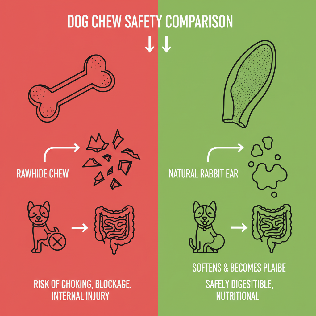 One of the biggest concerns with animal ears is chemical bleaching or "smoking" with artificial liquids to hide flaws. We found no evidence of chemical whitening in these Natural Rabbit Ears for Dogs. Unlike traditional rawhide, which is notoriously difficult for pups to break down and can cause dangerous blockages, rabbit ears consist of soft cartilage wrapped in thin skin. They don't splinter into sharp fragments; instead, they soften as your dog chews, making them a much safer alternative for aggressive chewers and seniors alike.