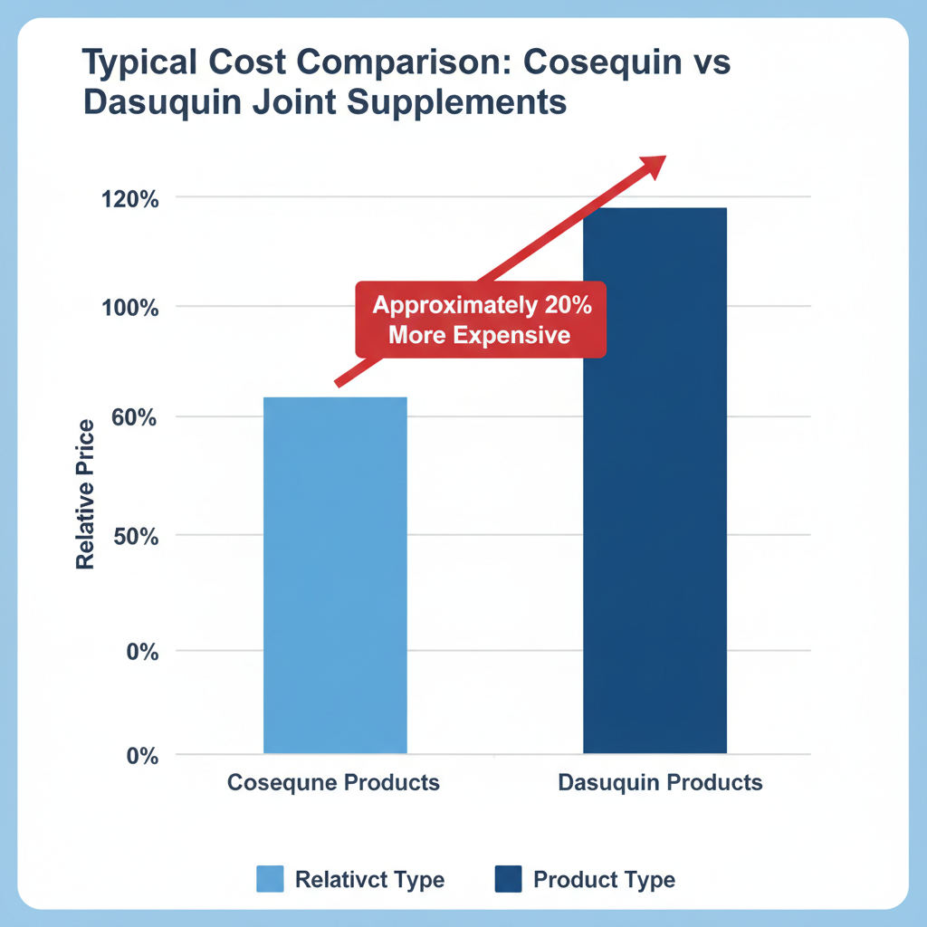 Cosequin supplements generally cost about 20% less than Dasuquin products. This price difference reflects the additional, specialized ingredients and advanced formulations found in Dasuquin, which contribute to its higher production value.