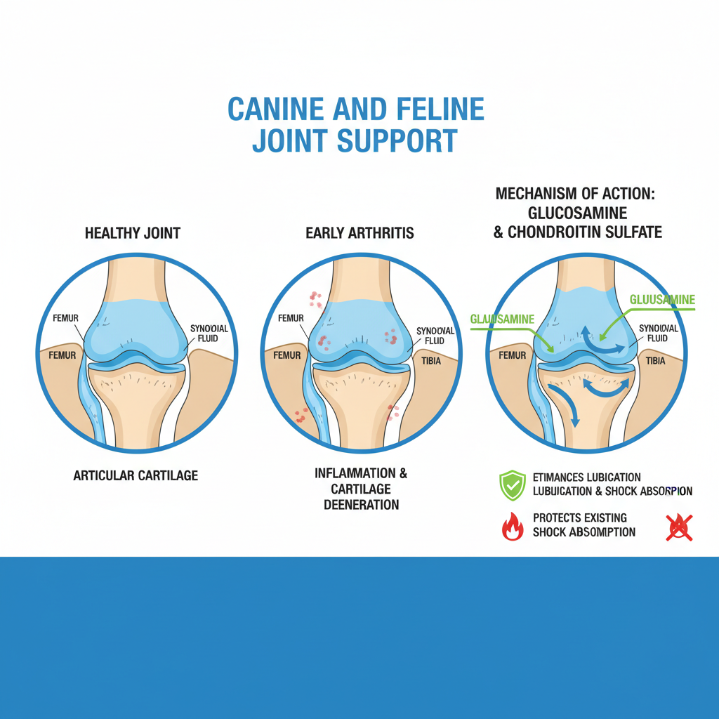 Together, glucosamine and chondroitin synergistically reduce inflammation and protect cartilage from deterioration. They are safe for long-term use and are often recommended as an early intervention in older pets, particularly those newly diagnosed with arthritis. Puppies and kittens as young as eight weeks old can also benefit, especially if they have hereditary conditions like hip dysplasia or are recovering from orthopedic injuries. Additionally, these supplements serve as excellent preventative care during a pet’s early years.