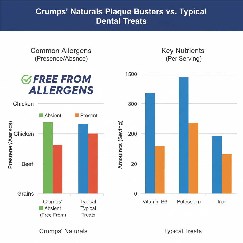 While these are designed for dental hygiene, they don't skip on nutrition. Unlike some "edible" bones that are mostly starch and air, Crumps' Naturals Plaque Busters provide a hit of Vitamin A and B6. Since they are grain-free and don't rely on chicken or beef proteins, they are a safe harbor for dogs who break out in hives or get itchy ears from standard meat-based treats. The Potassium and Iron content supports heart health and energy levels, ensuring your dog isn't just getting empty calories.