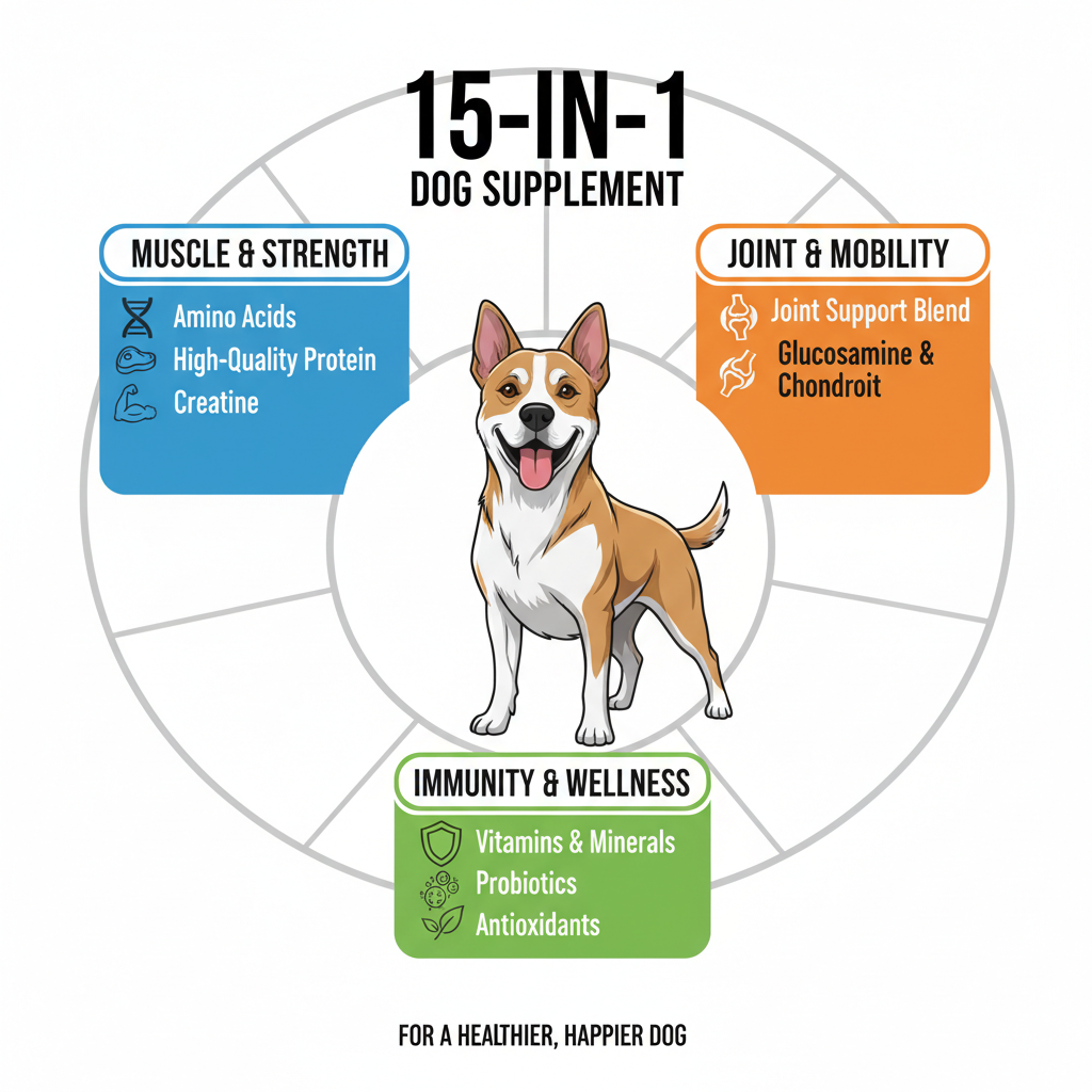 This isn't just a simple protein bite. Our team at Petscarelab found that the 15-in-1 formula focuses heavily on amino acids—the building blocks of muscle. By combining high protein with specific nutrients for tissue repair, it targets physical development from multiple angles.