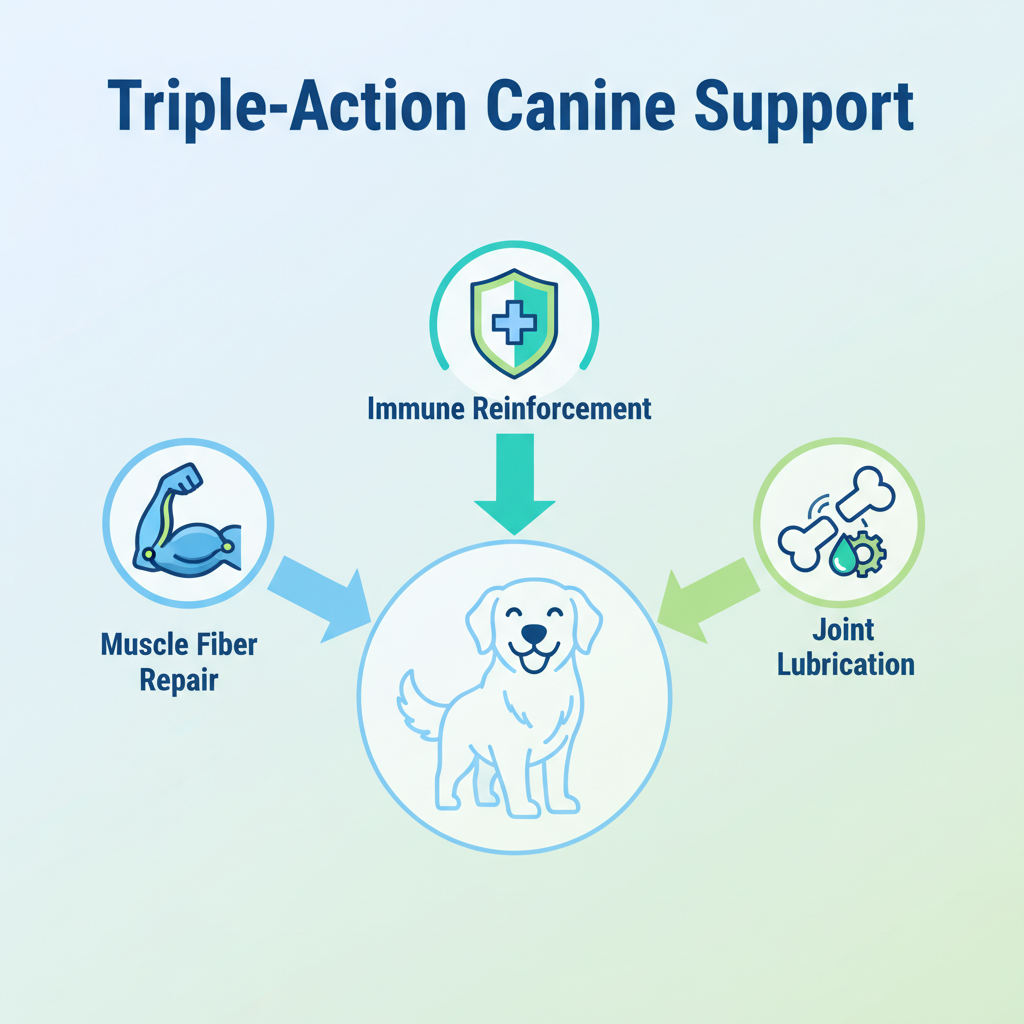 It's a must-have for hard gainers (dogs that stay thin) and senior pets who need to maintain their strength to protect their joints. It provides a comprehensive solution for physical maintenance.
