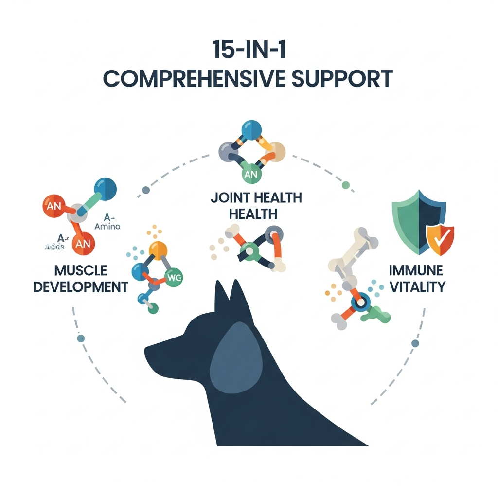 This supplement leans heavily on amino acids—the building blocks of protein. It's designed to help with tissue repair and muscle protein synthesis, which is vital for active dogs or those recovering from illness.