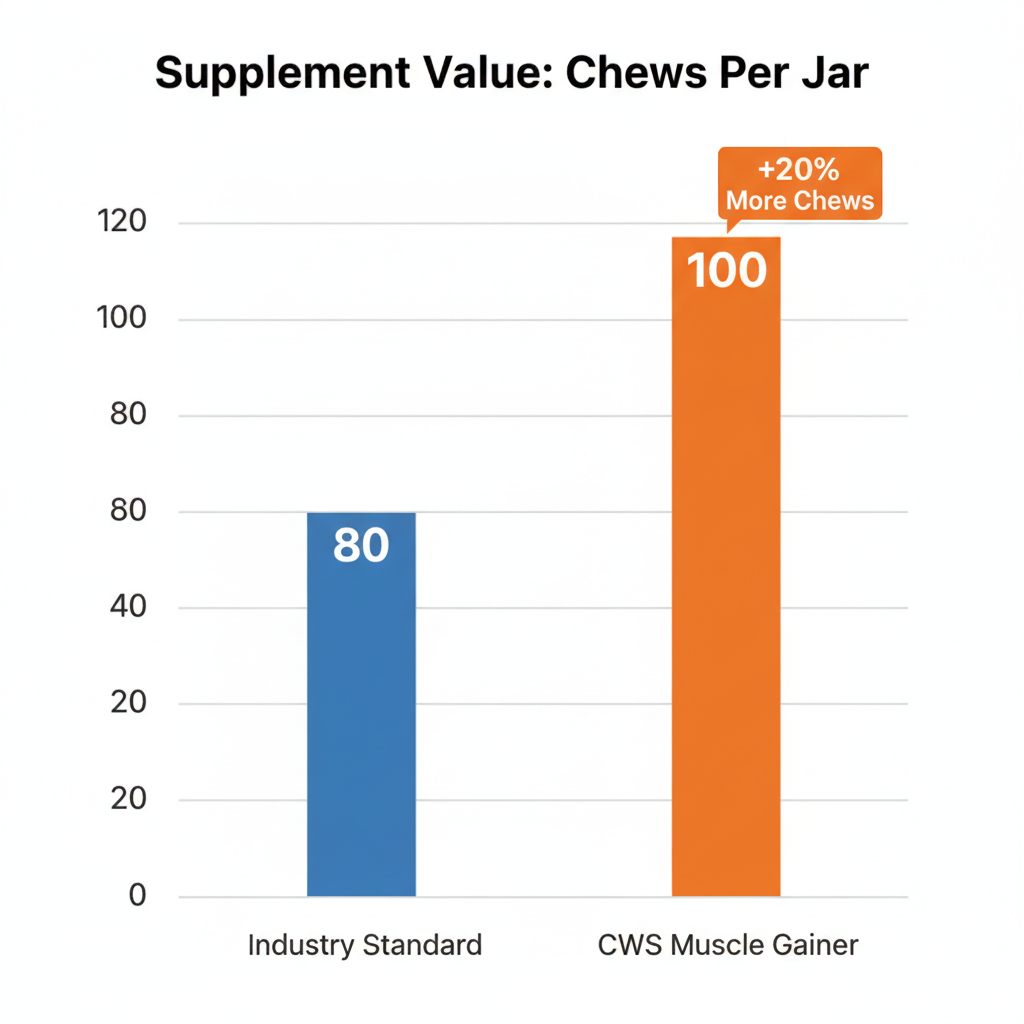 Pet Reaction: We didn't notice any immediate digestive upset, though CWS specifically recommends starting with a half-dose. This is smart advice for any muscle gainer dog treats to let your pup's tummy adjust to the concentrated nutrients.