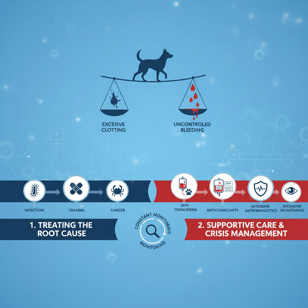 Treating DIC in dogs is incredibly challenging, like walking a tightrope. Our veterinary team has to battle two opposite problems at once: stopping the excessive clotting and preventing uncontrolled bleeding. We focus on two main goals: