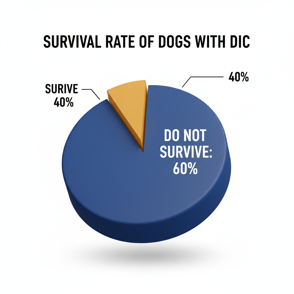 The prognosis for dogs diagnosed with DIC is guarded, with about 40% surviving the condition. Because of its life-threatening nature, immediate veterinary care is essential to improve the likelihood of recovery.
