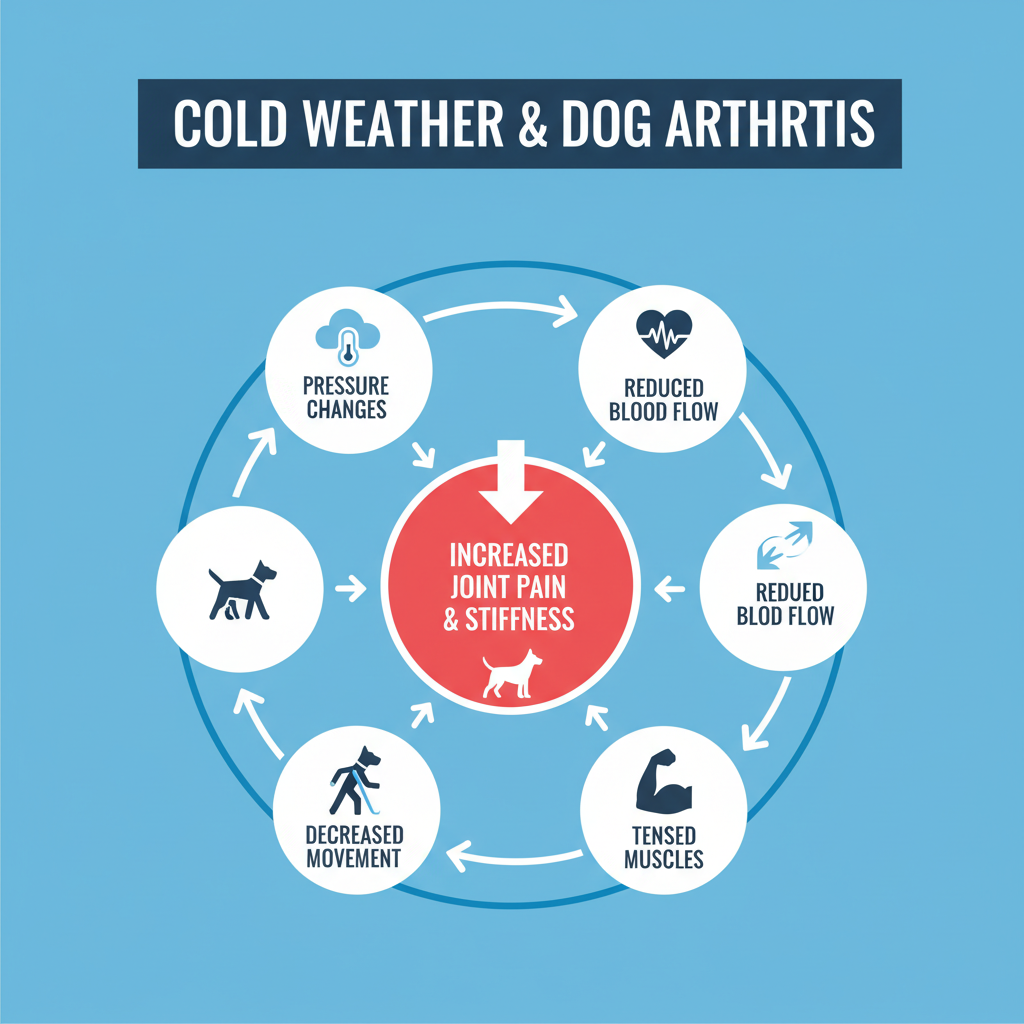- Less Blood Flow: Cold weather makes blood vessels constrict. That means less blood gets to your dog's paws and joints, which can make those joints feel stiffer and hurt more.