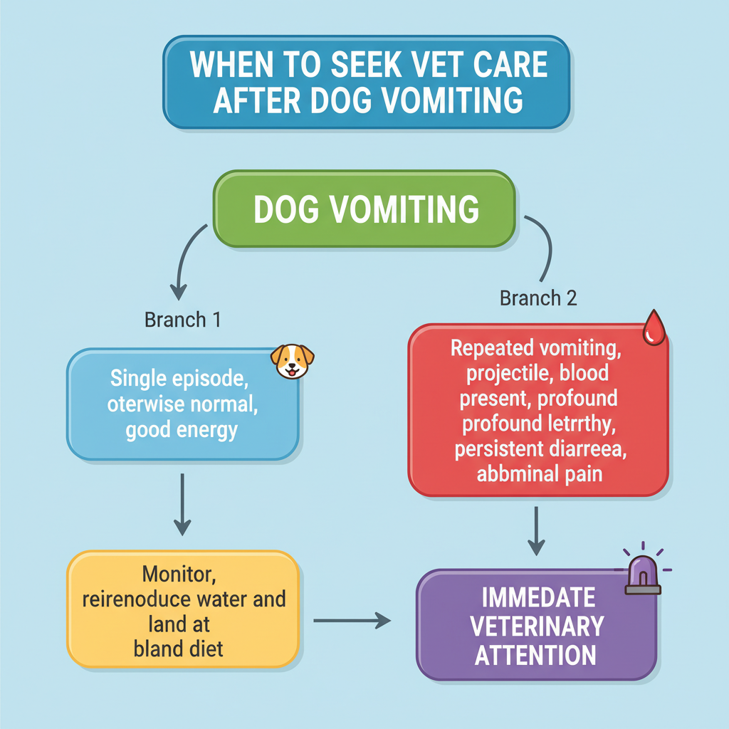 It's crucial to understand when to seek immediate veterinary attention. If your dog is experiencing repeated vomiting, projectile vomiting, has blood present in their vomit, or exhibits additional concerning symptoms like profound lethargy, persistent diarrhea, or signs of abdominal pain, please contact your veterinarian at once. These could indicate a more serious underlying health issue that requires professional diagnosis and treatment from our expert team at Petscarelab or your trusted vet.