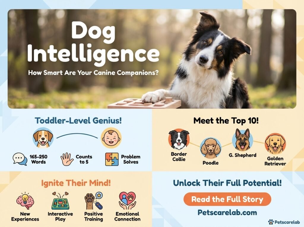 While every dog is an individual, our research at Petscarelab, looking at various studies and insights from obedience judges, has identified some breeds generally known for their top-tier working and obedience smarts. Here are the top 10: