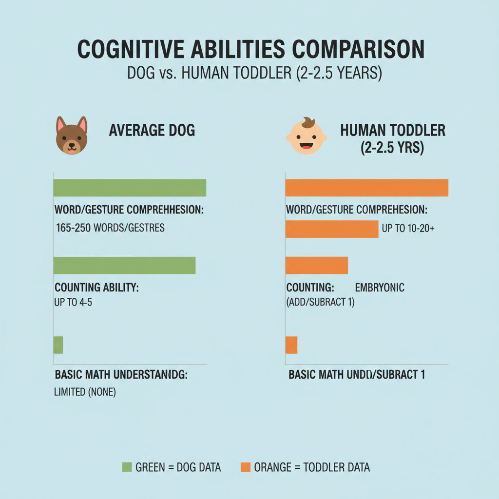 Our team at Petscarelab, along with many veterinary specialists, suggests that the average dog actually has the mental abilities of a human toddler, somewhere between two and two-and-a-half years old. This means they can: