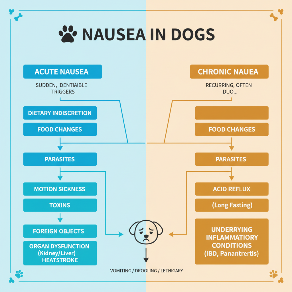 Sudden changes in dog food—sometimes even switching flavors within the same brand—are another frequent culprit. And motion sickness during car rides is also a common trigger for acute nausea.