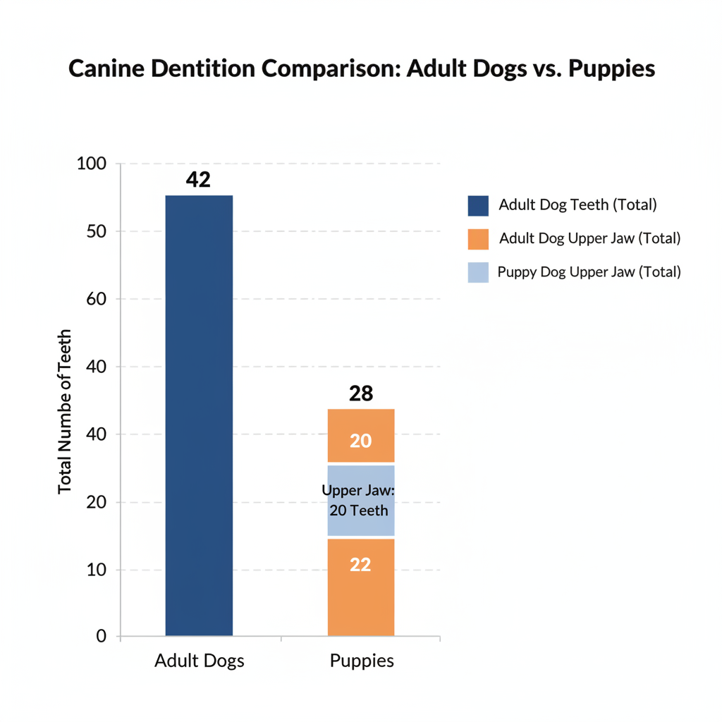 All adult dogs, regardless of size, possess 42 permanent teeth—20 in the upper jaw and 22 in the lower jaw.