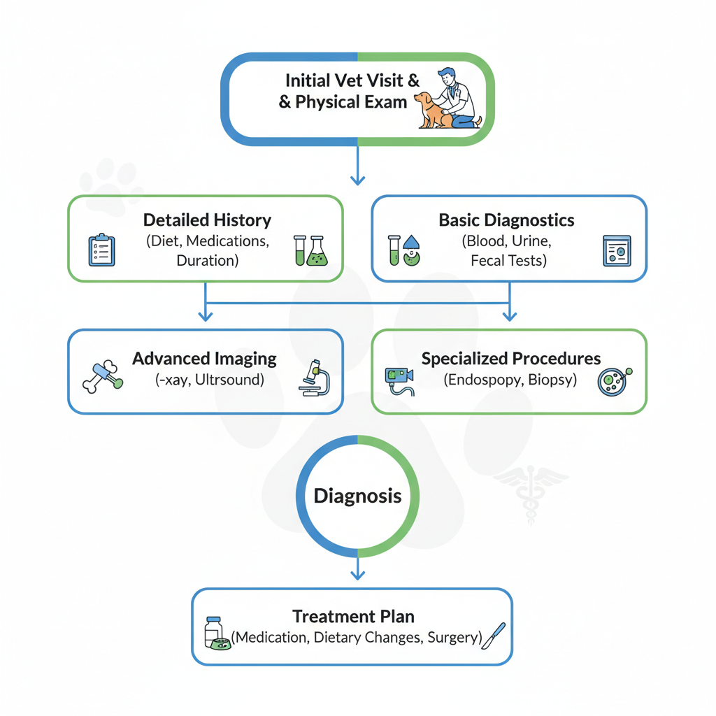 - Fecal Examination: A stool sample will be analyzed to screen for the presence of intestinal parasites that could be irritating the digestive system.