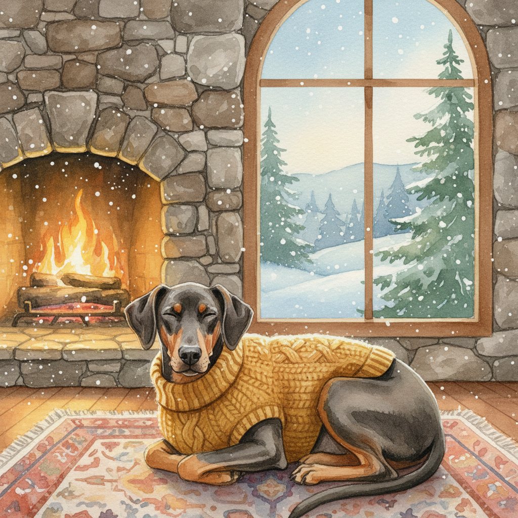 Doberman Pinschers have sleek, short coats and very little body fat to protect them. This combination leaves them highly susceptible to cold weather. Plan on keeping them bundled up and indoors during the colder months.