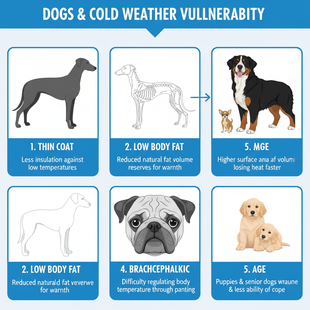Older pups of any breed are generally more sensitive to the cold. As dogs age, their metabolism often slows down, making it tougher for their bodies to generate and keep heat. They usually lose some of that puppy fat, too, which was a natural insulator, making them more prone to hypothermia.