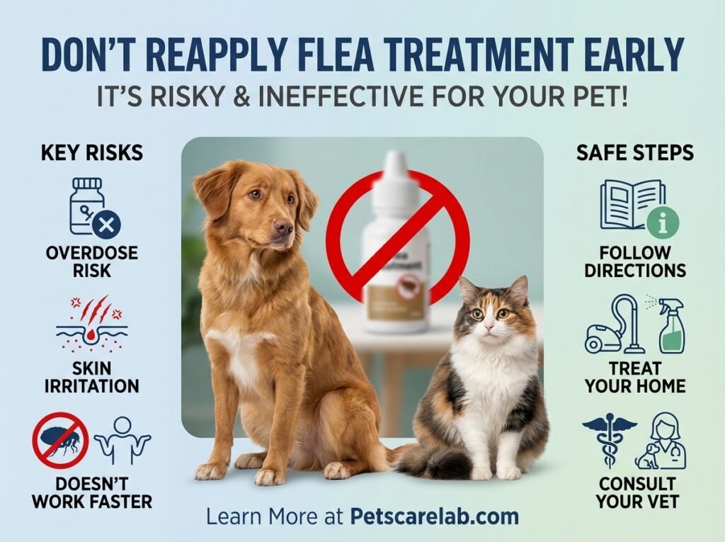 When you spot your pet scratching like crazy, it's completely natural to want to fix the problem ASAP. You might even eye that flea treatment bottle you just used and wonder, "Can I actually reapply flea treatment early to make these pesky bugs disappear faster?" While it’s super tempting to give your furry friend another dose right away, our team at Petscarelab advises against trying to reapply flea treatment early. Doing so can be risky and even dangerous for your pet.
