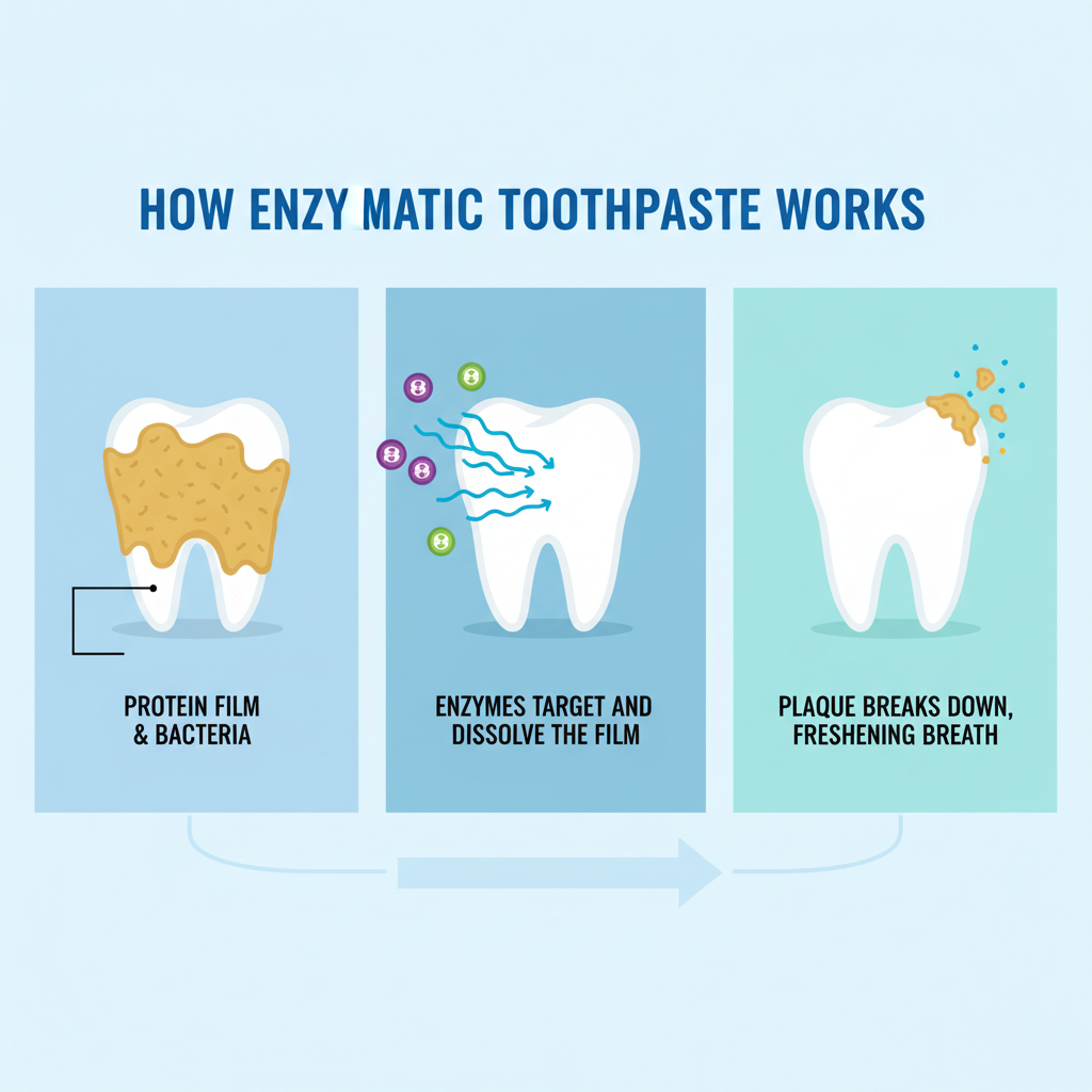 - The heavy lifter here is the enzymatic formula. Unlike human toothpaste, which relies heavily on mechanical scrubbing, this toothpaste uses enzymes to chemically break down the protein film that leads to plaque. It’s designed to keep working even after you’ve stopped brushing.