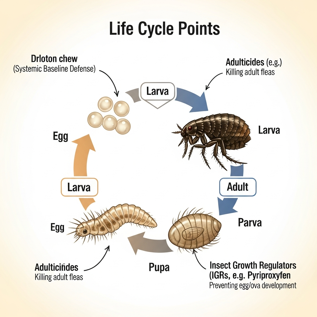 This is where you bring in the heavy hitters alongside your daily chews. For active outbreaks, you need chemical treatments containing adulticides like Permethrin to immediately kill biting adults, paired with Insect Growth Regulators (IGRs) like Pyriproxyfen to completely break the egg-larvae cycle hiding in your carpets.