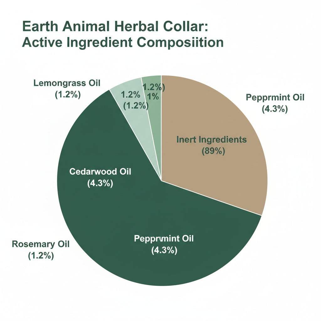 When our team at Petscarelab looked into the Earth Animal Herbal Collar, we found it departs from the traditional "kill on contact" neurotoxins. Instead, it relies on a potent blend of essential oils that pests naturally loathe. The "Core Technology" here is a slow-release matrix of 4.3% Cedarwood Oil and 4.3% Peppermint Oil, bolstered by 1.2% Lemongrass and 1.2% Rosemary.