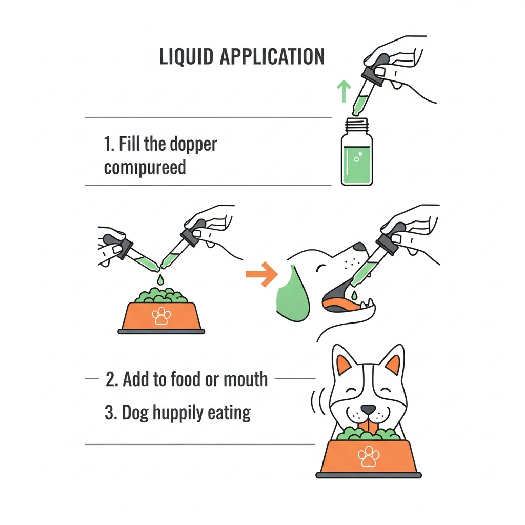 Since it’s a tincture, the consistency is thin and watery, making it easy to mix into food or drop directly into the mouth. It carries a mild, earthy herbal scent—far better than the medicinal "hospital" smell or the artificial mint found in some pet health products.