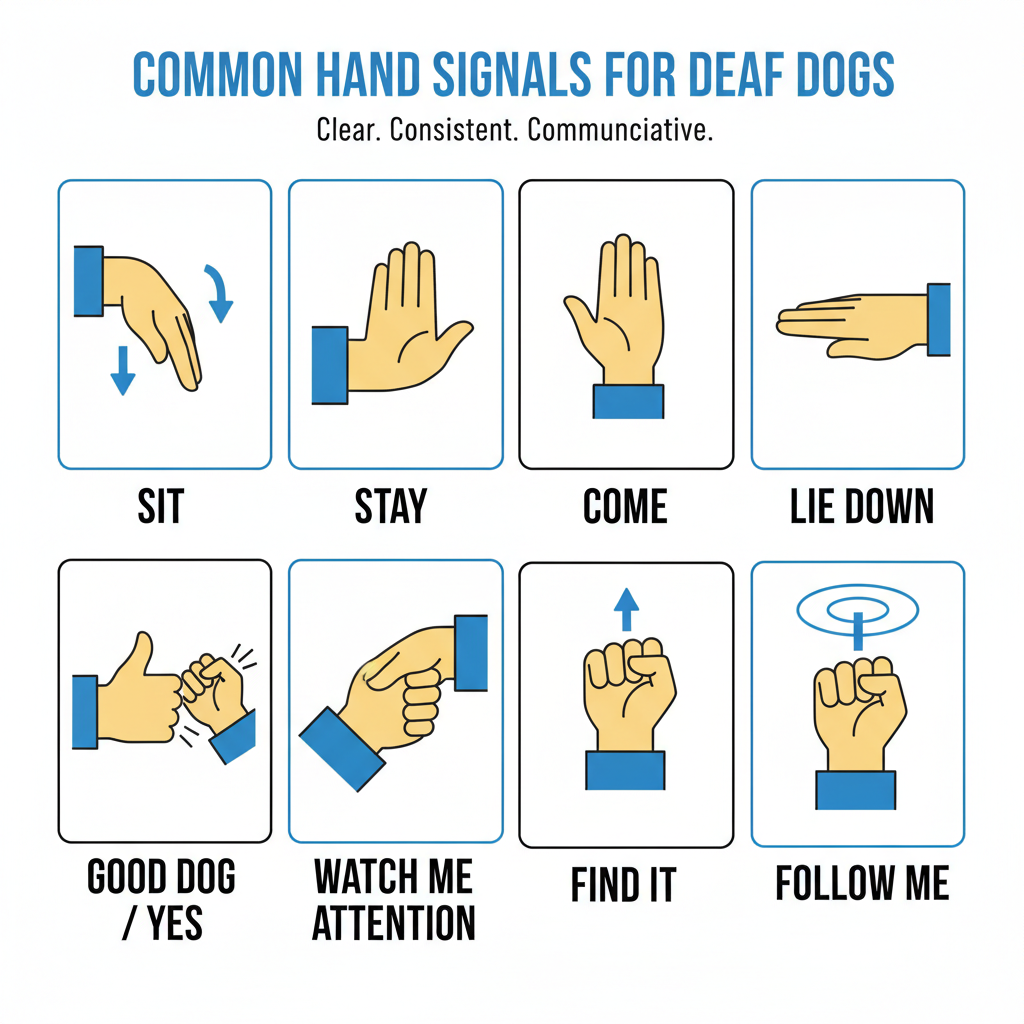 Hand signals are essential for conveying commands to deaf dogs. Choose clear, consistent signals before beginning training.
