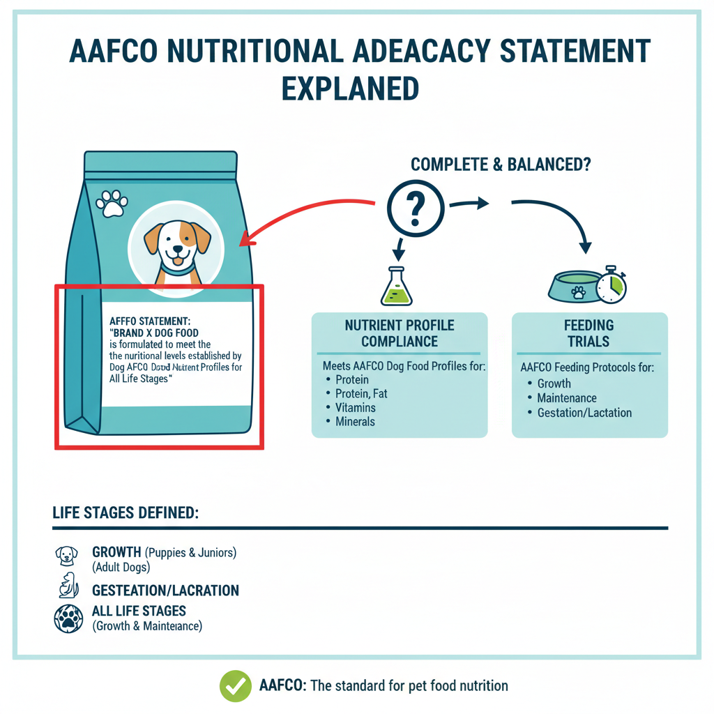 When a food bears the AAFCO nutritional adequacy statement, it confirms that the product meets established criteria for being complete and balanced for certain life stages or sizes. This assurance means the food either meets nutrient profiles recognized by AAFCO or has passed feeding trials.