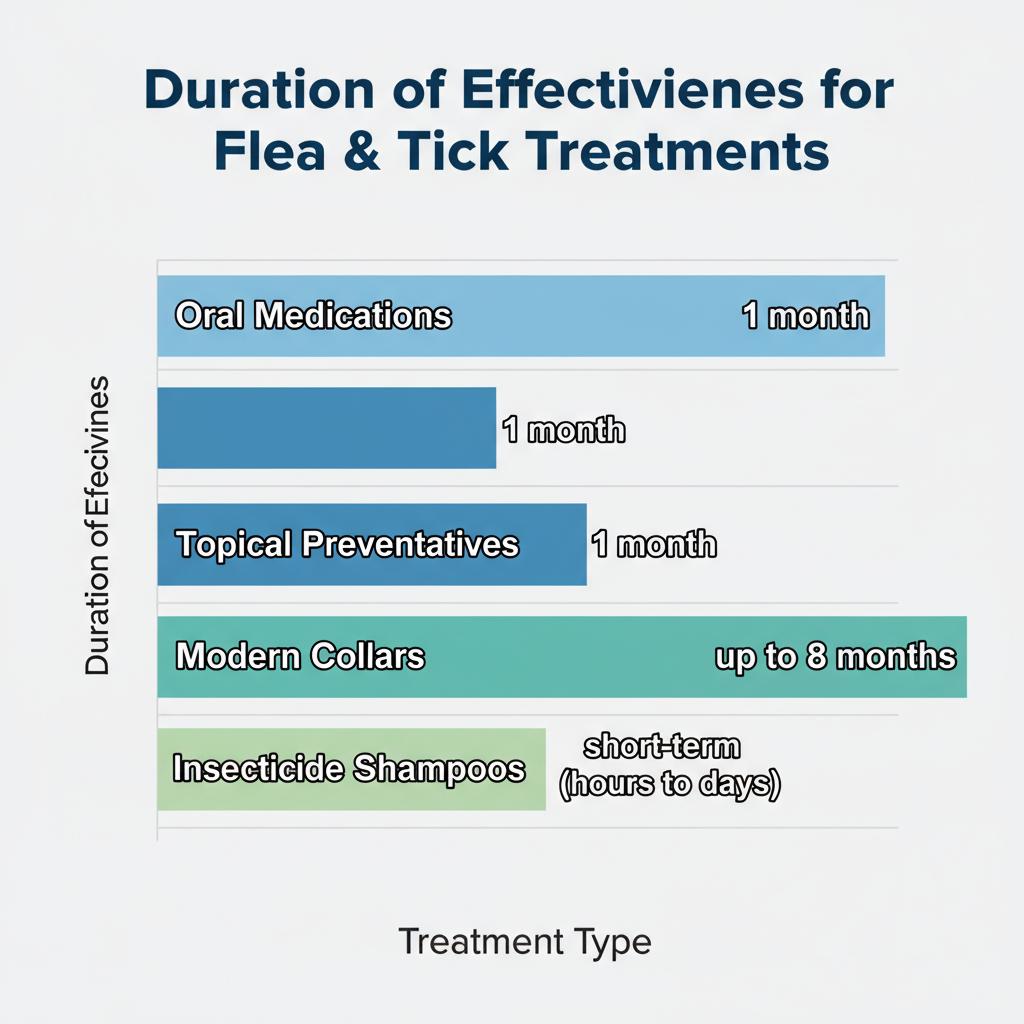 These are super convenient and incredibly effective. Your pet takes a tasty chew, and the medication gets into their bloodstream, killing fleas and ticks when they bite. Most oral medications work for a month and are easy to give.