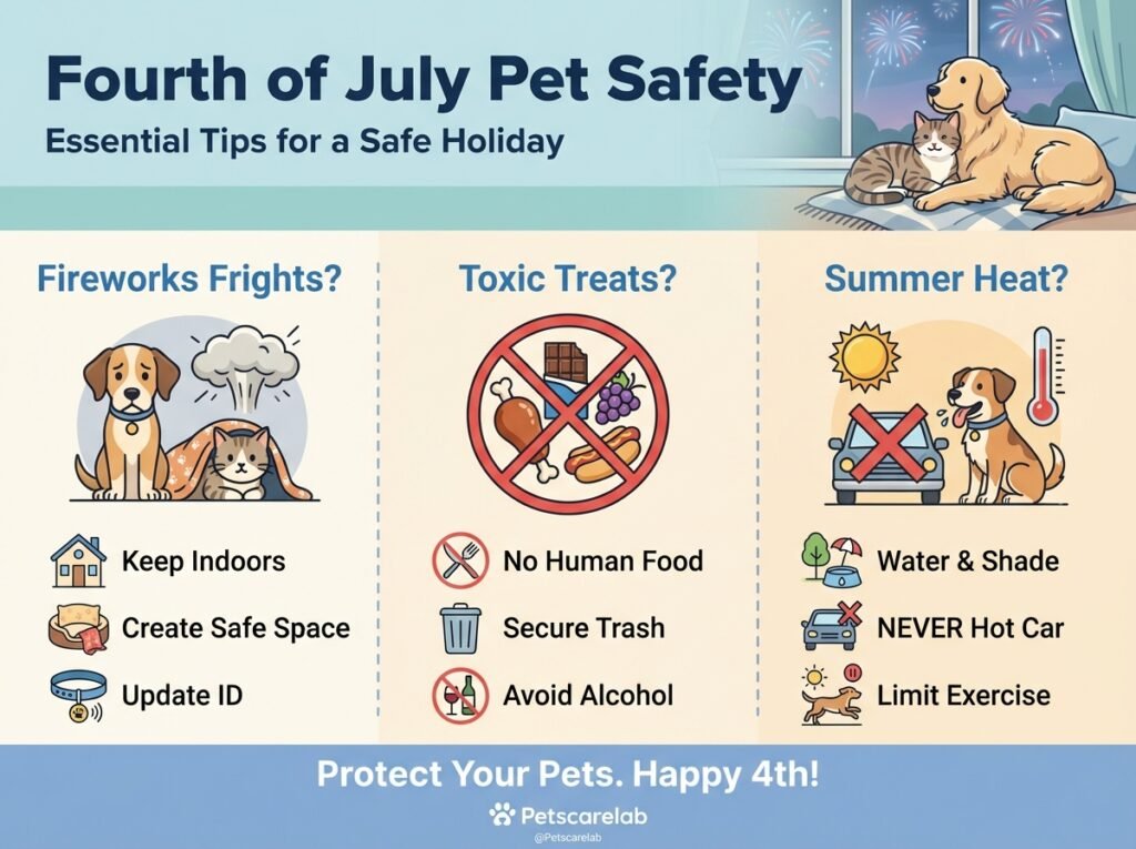 By following these essential Fourth of July pet safety guidelines, you can help ensure your furry companions have a safe, calm, and happy holiday while you enjoy the festivities. Our team at Petscarelab wishes you and your pets a joyful and protected celebration!