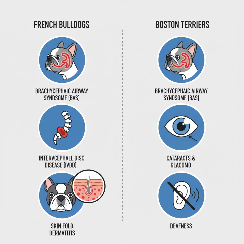 One key health distinction is that Boston Terriers tend to face more eye issues, like cataracts and glaucoma. They can also be more susceptible to deafness and certain types of cancer.
