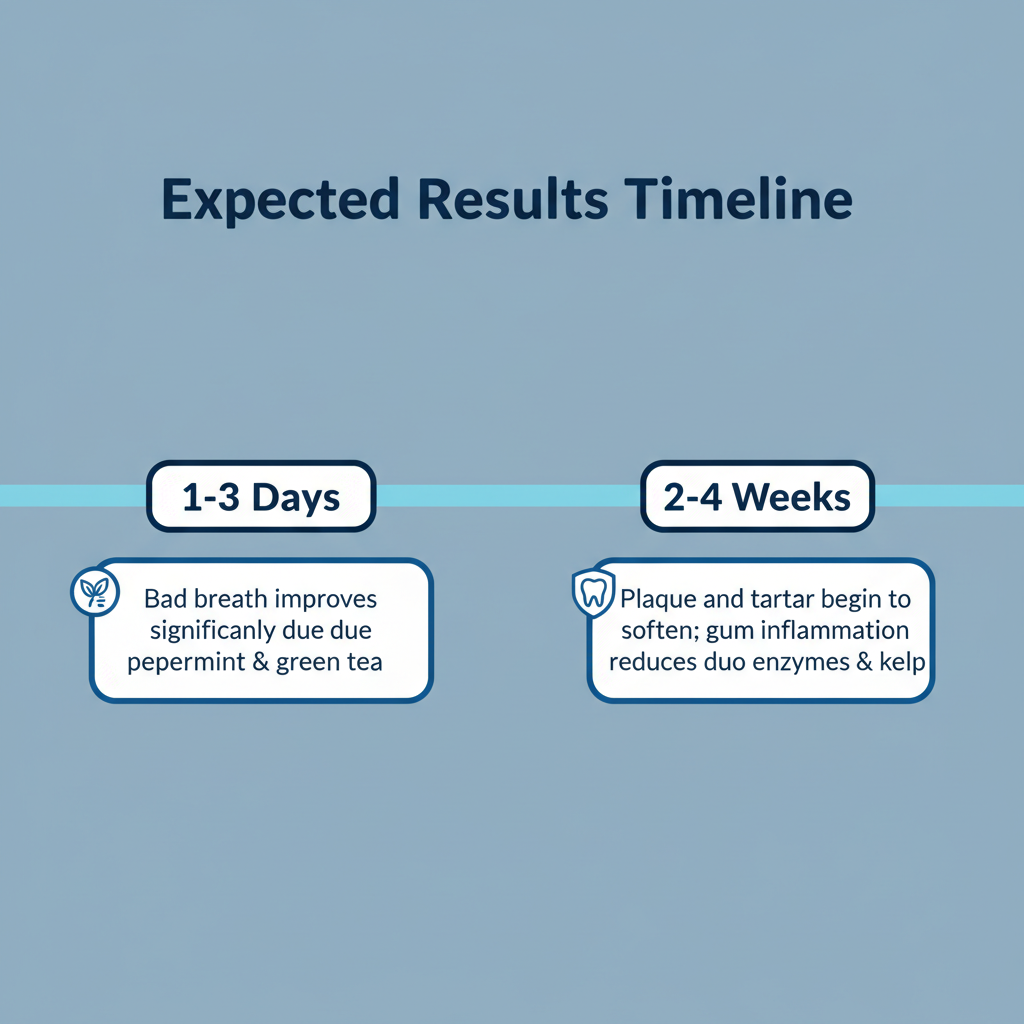 This is where the kelp and enzymes shine. By the end of the first month, you'll likely notice the gum line looks less angry. If your pup has that hard, yellow "stone" on their back molars (tartar), it starts to look softer and more porous, making it easier to scrape off with a chew toy.