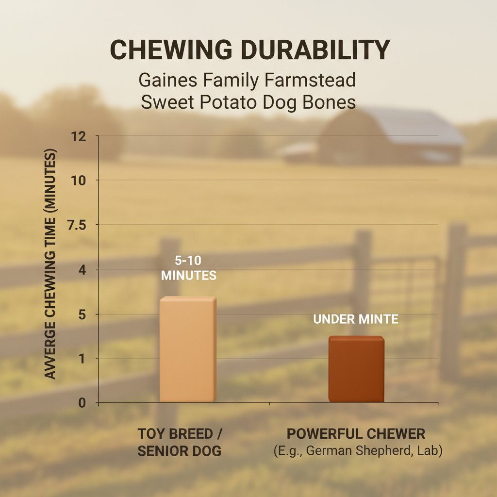 Gaines Family Farmstead Sweet Potato Dog Bones are 100% natural, single-ingredient treats featuring a chewy texture and high fiber content; they earn a 4.5/5 rating for being an excellent digestive aid suitable for all dog breeds and life stages, particularly those with sensitive stomachs.