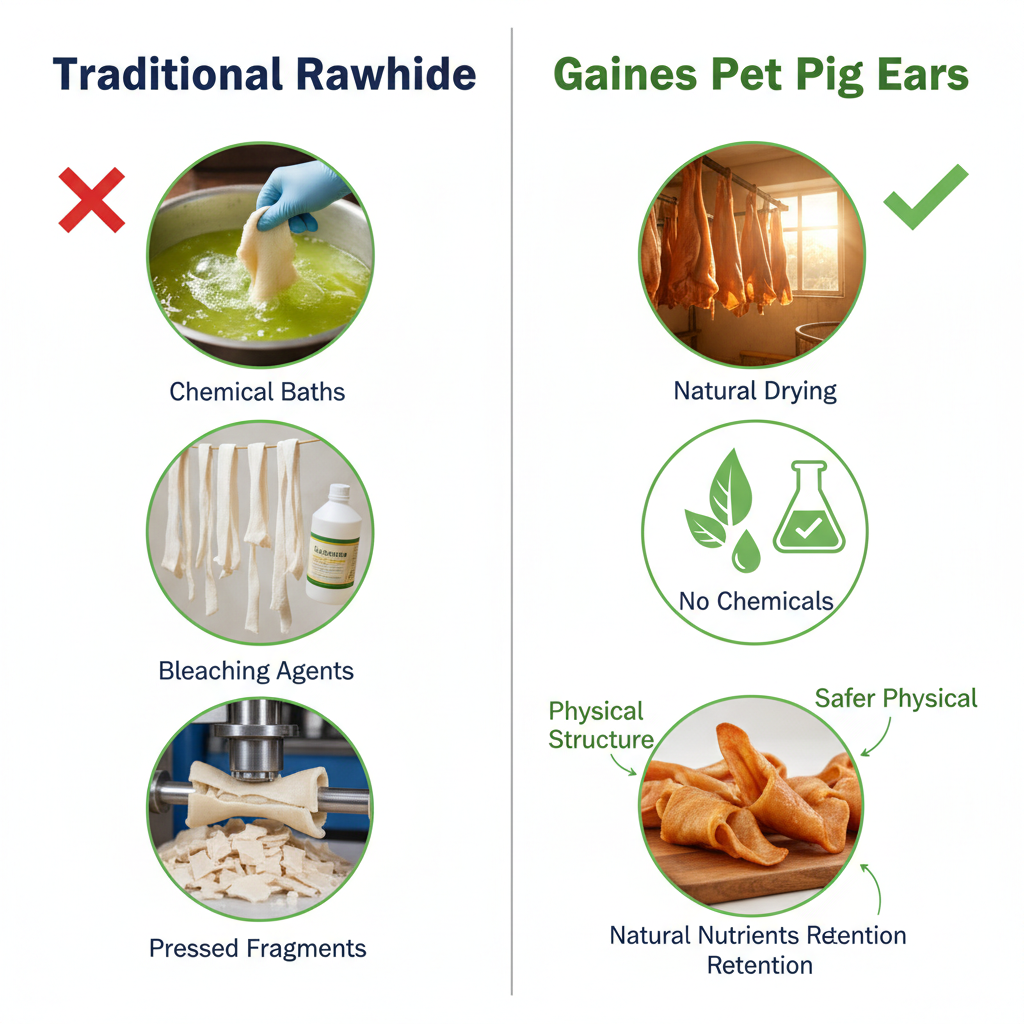 If you’ve ever worried about the chemical baths used to make traditional rawhide, these pig ears will put your mind at ease. We checked specifically for chemical bleaching and added preservatives—there are none. The ears are naturally processed to retain their brown, leathery color rather than being dyed or chemically whitened.