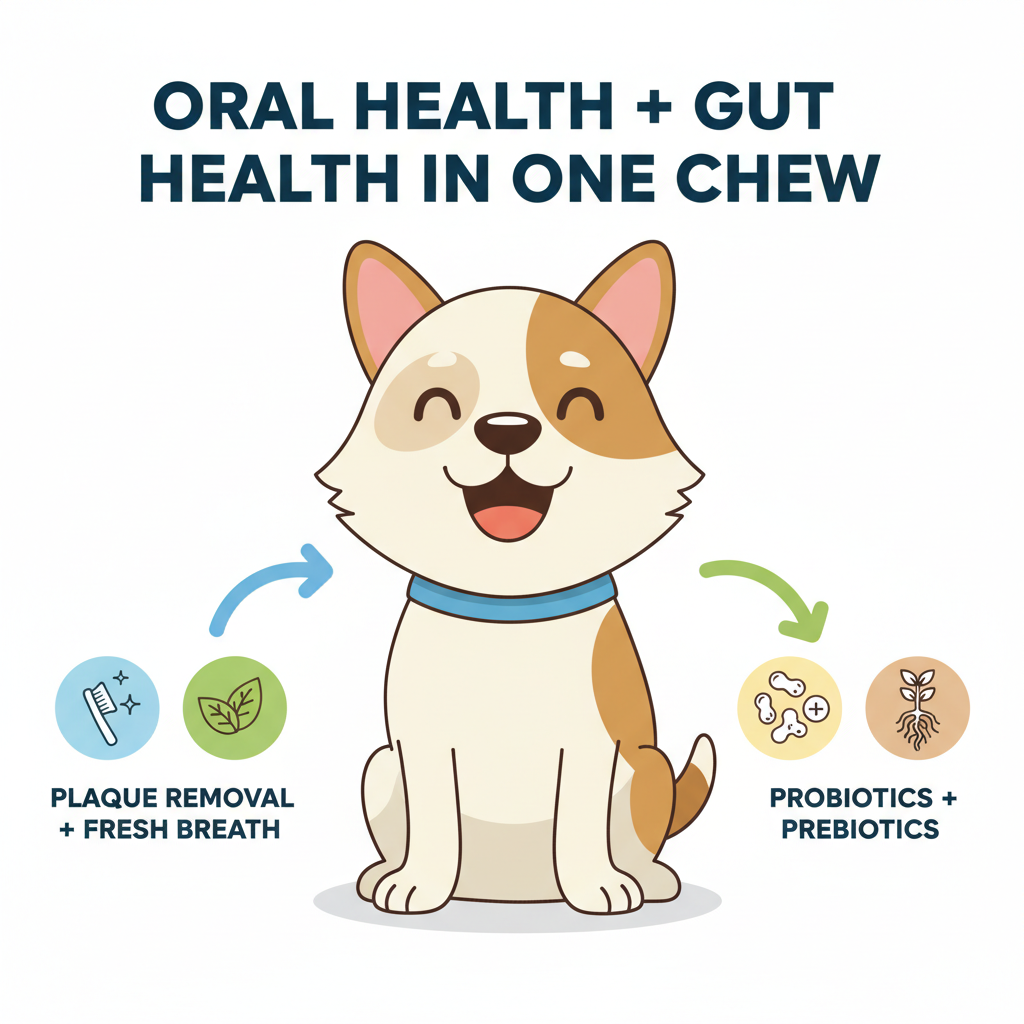 PetsCareLab's Conclusion: A 2-in-1 functional powerhouse that tackles stinky breath and sensitive tummies simultaneously. Best for small breeds of all ages, especially those prone to gas or loose stools.