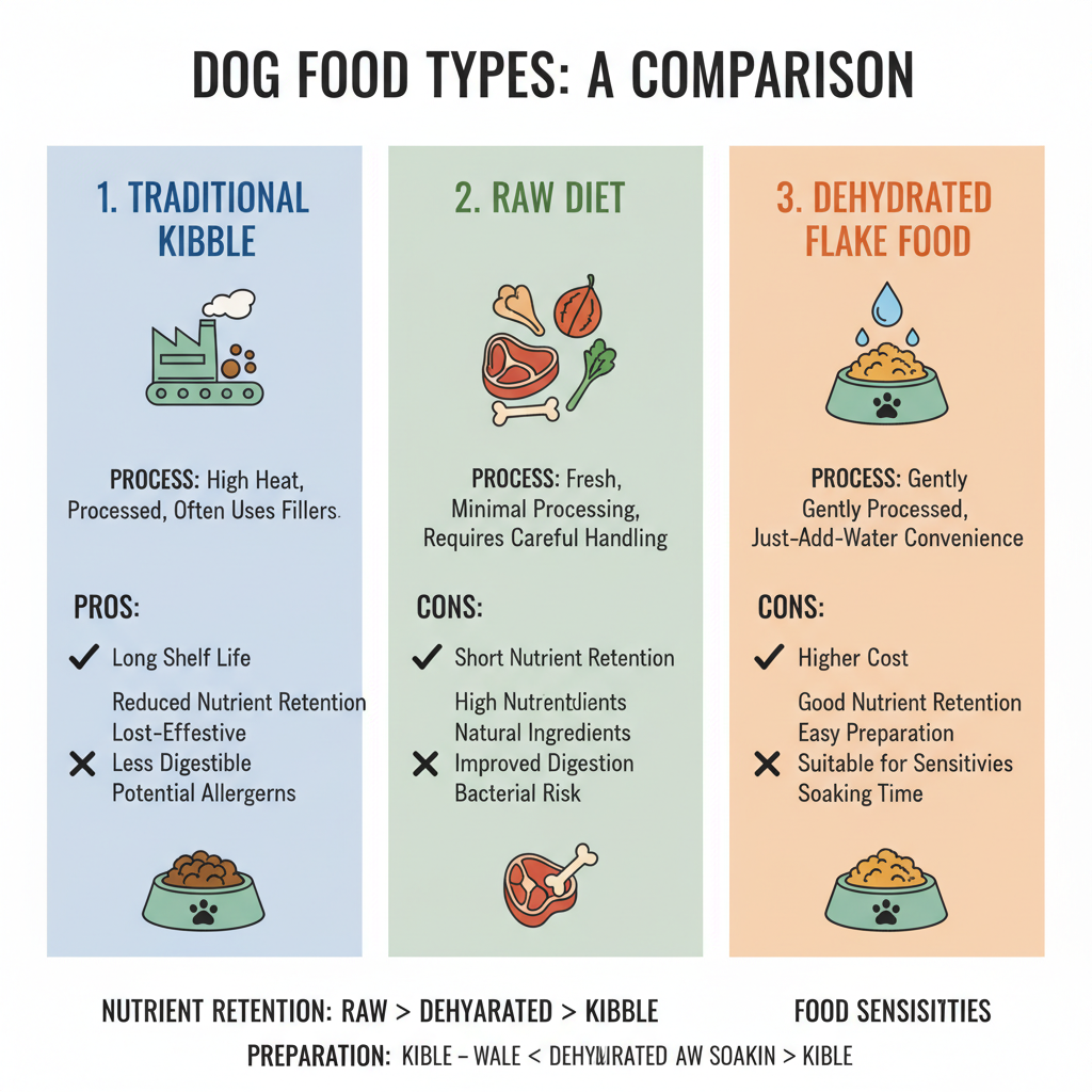 - Dehydrated Flakes: Unlike high-heat kibble, the dehydration process keeps the natural enzymes and vitamins intact. When you add warm water, it rehydrates into a texture that’s much closer to real, homemade food than a hard pellet.