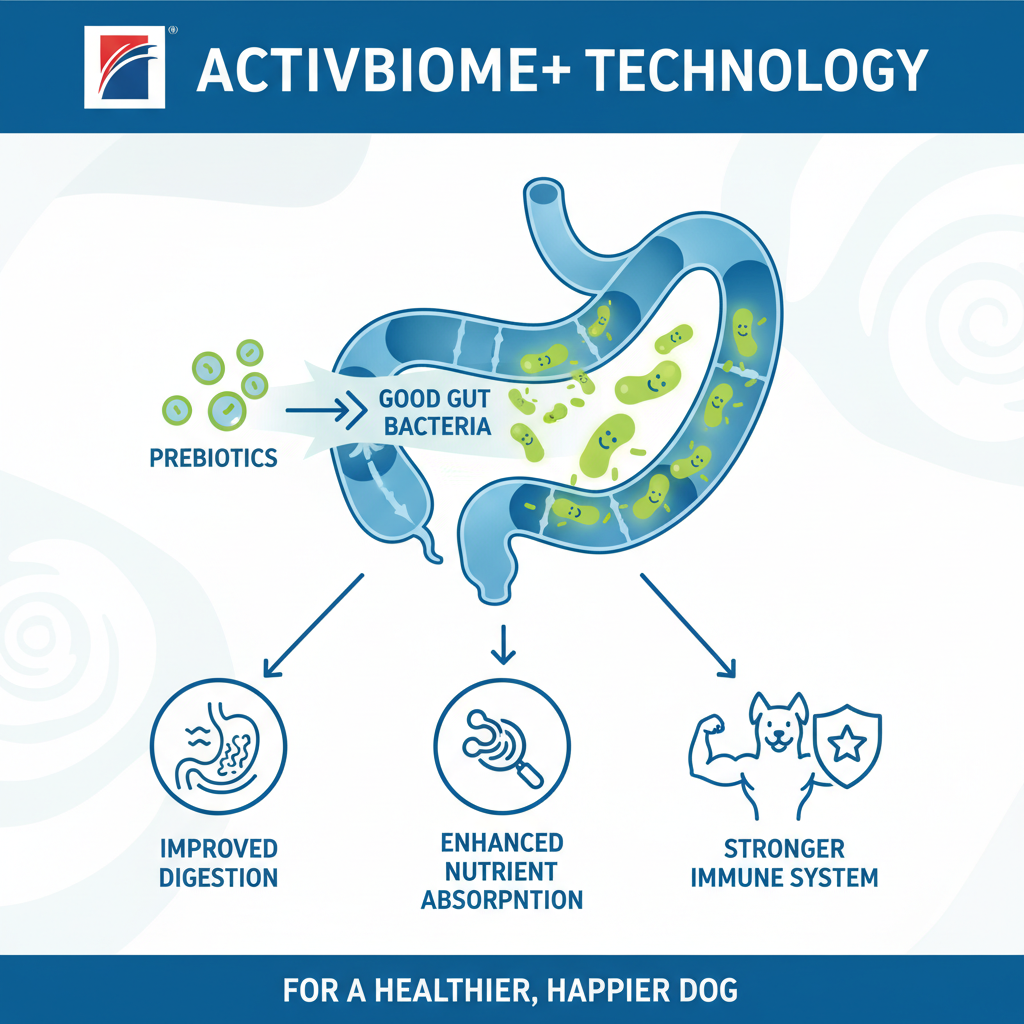 - ActivBiome+ Prebiotics: A specific blend of fibers (like beet pulp and flaxseed) that supports the gut microbiome.