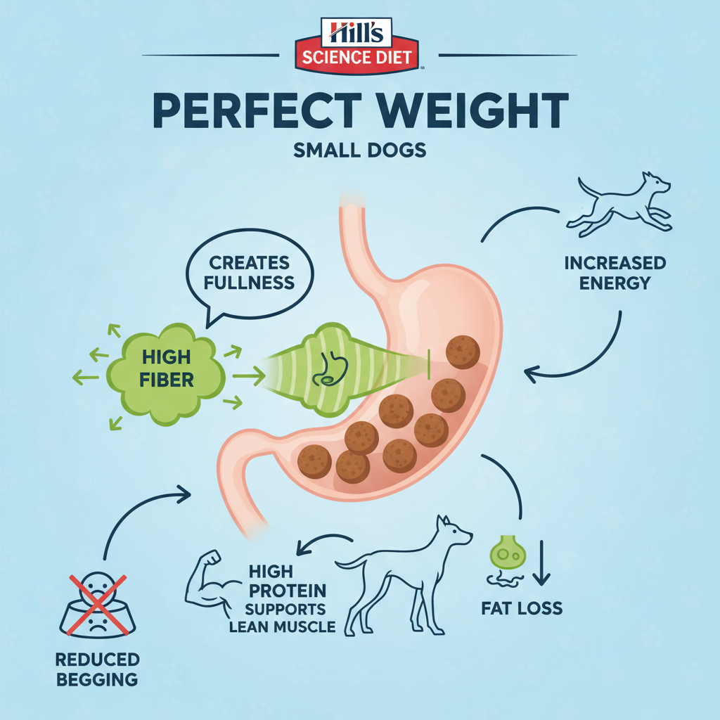If you've noticed your tiny dog is getting a bit rounder or struggling to jump onto the sofa like they used to, you aren't alone. Hill's Science Diet Perfect Weight Small & Mini is designed to tackle that "extra fluff" without making your pet feel like they're on a crash diet. Our research at Petscarelab shows this weight management kibble is a top-tier choice for small and toy breeds aged 1 to 6 who need to shed pounds safely while keeping their energy up.